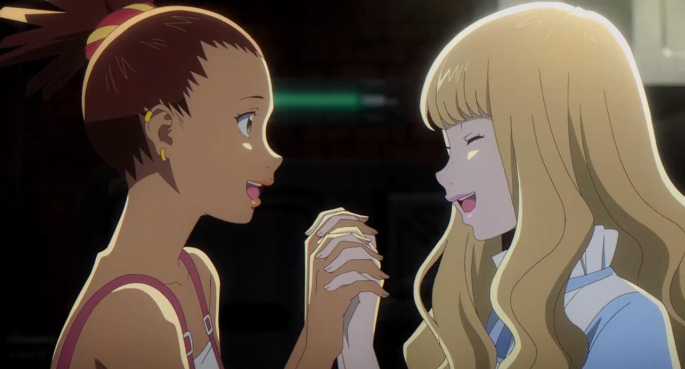 I suppose I can’t talk about this show without mentioning the music. I’m usually not so much of a fan of pop, but I still like the songs by Carole and Tuesday. I love their voices. The awkward lyrics are sometimes a bit annoying, but for the song they sung in episode 5 (“Someday I’ll find My Way Home”), the lyrcis were poetic and soothing. I don’t know anything about playing musical instruments, but to me it looks like the animation does a great job showing the girls playing guitar and keyboard, plus singing. It looks and sounds stellar overall.