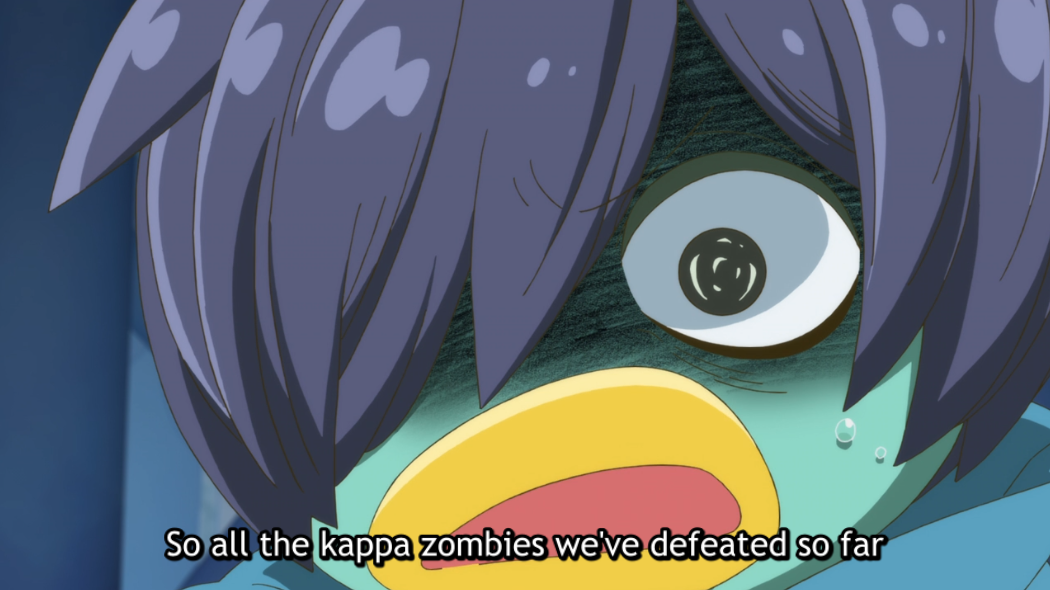 I really love the build-up of this series…it’s not afraid to just throw all of its wild kappa, butthole, otter musical plot points out immediately, and then wait until episode 6 to actually explain what’s going on. It just feels really rewarding, and I really like series that have exposition unfold naturally over time instead of explaining it all in a clipshow right in episode 1 or something. It’s just a REALLY good mid-season episode!!