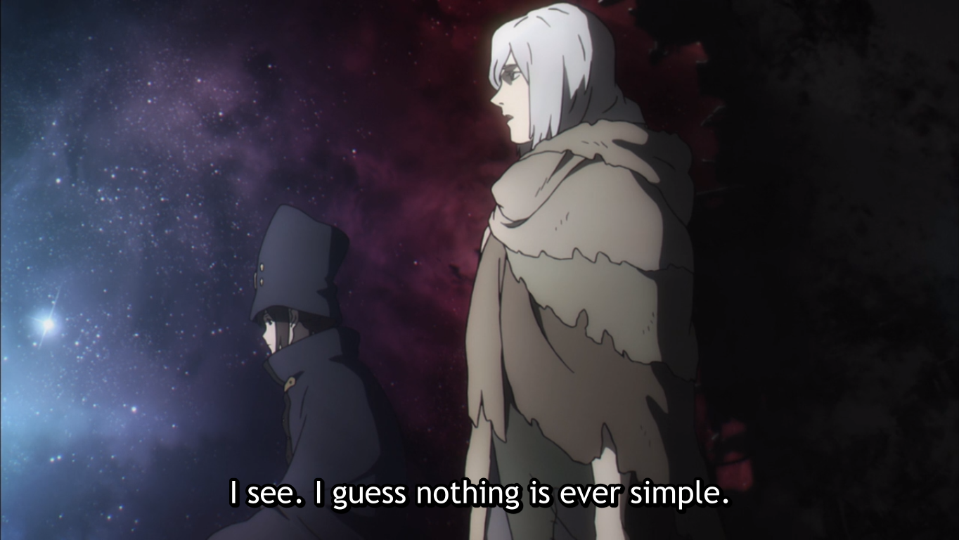 This sci-fi type of evolution is a metaphor for the “psychological evolution” of humans, which could happen on the individual level or the societal level. People change in mysterious ways. People drive society, and society moves. Eventually, the whole world moves. However, it’s not moving in one consistent direction, as Boogiepop pointed out in the quote at the start of this section . Humans and their personal ways of thinking and relating to the world and each other are too intricate and complicated to ever analyze completely. Things won’t always make sense.