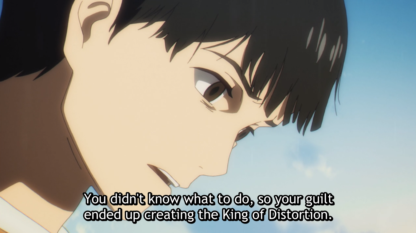 The final arc of Boogiepop (2019) is more thrilling and suspenseful than the others, in my opinion. In terms of its main or major theme, though, it’s much simpler than the previous arc. A cognitive distortion is a falsification or misrepresentation in the way we think. That’s the major theme. The King of Distortion is a possibility within Shirou Tanaka which appears to many others with the intention of helping them turn their pain “into gold.”