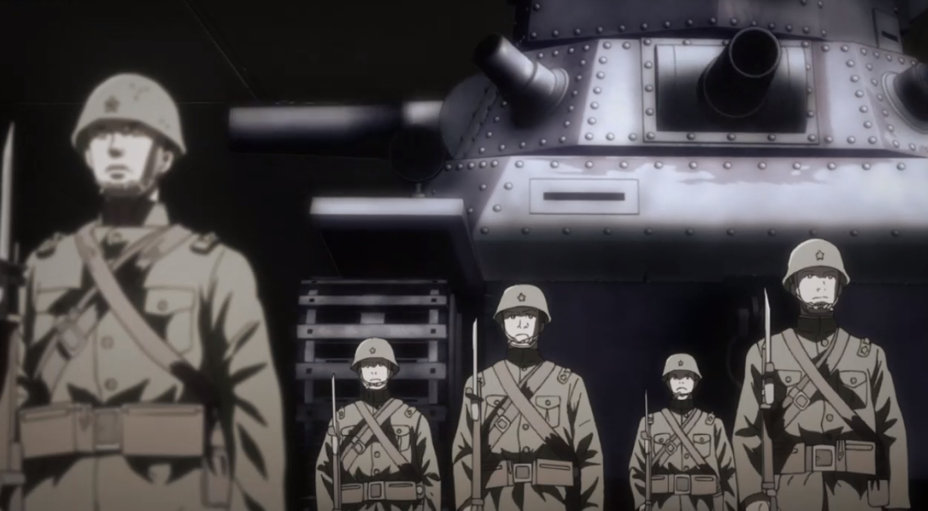 As for Kiba, he is a veteran of WWII in addition to being a detectice. Episode 1 gives a quick but stunning view into what it’s like for him. When he can’t sleep on the train alone at night, and when he does doze off, he only sees terrible nightmares reminiscent of his experiences in the war. Apparently, it was seeing comrades die that scarred him. Episode 4 also gives a horrifying vision from Kiba’s brain, wherein a monstrous tank crushes soldiers to pieces under its wheels. Kiba seems to be able to cope with his PTSD and live a normal detective’s life without help, but that doesn’t mean it’s easy for him. He’s probably grumpy most of the time from lack of sleep. Sometimes he doesn’t think clearly at all, either.