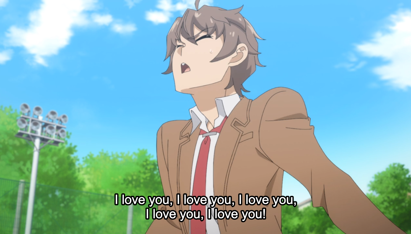 Anyway, his friends only call him that in good fun, to get back at him for his constant, clever teasing or the way he embarrasses them or himself. Sakuta isn’t a bastard or a pig or even a rascal, really. He’s extremely kind, patient, understanding, welcoming, and mature for his age. He is unconventional in the way he says his feelings so frankly, the jokes he makes, and how vulnerable he lets himself be in a psychological sense. So it’s only natural he’s a bit deadpan and sarcastic, and looking for ways to get reactions out of others. It’s his social defense mechanism and he’s very good at it. I admire Sakuta as a character.
