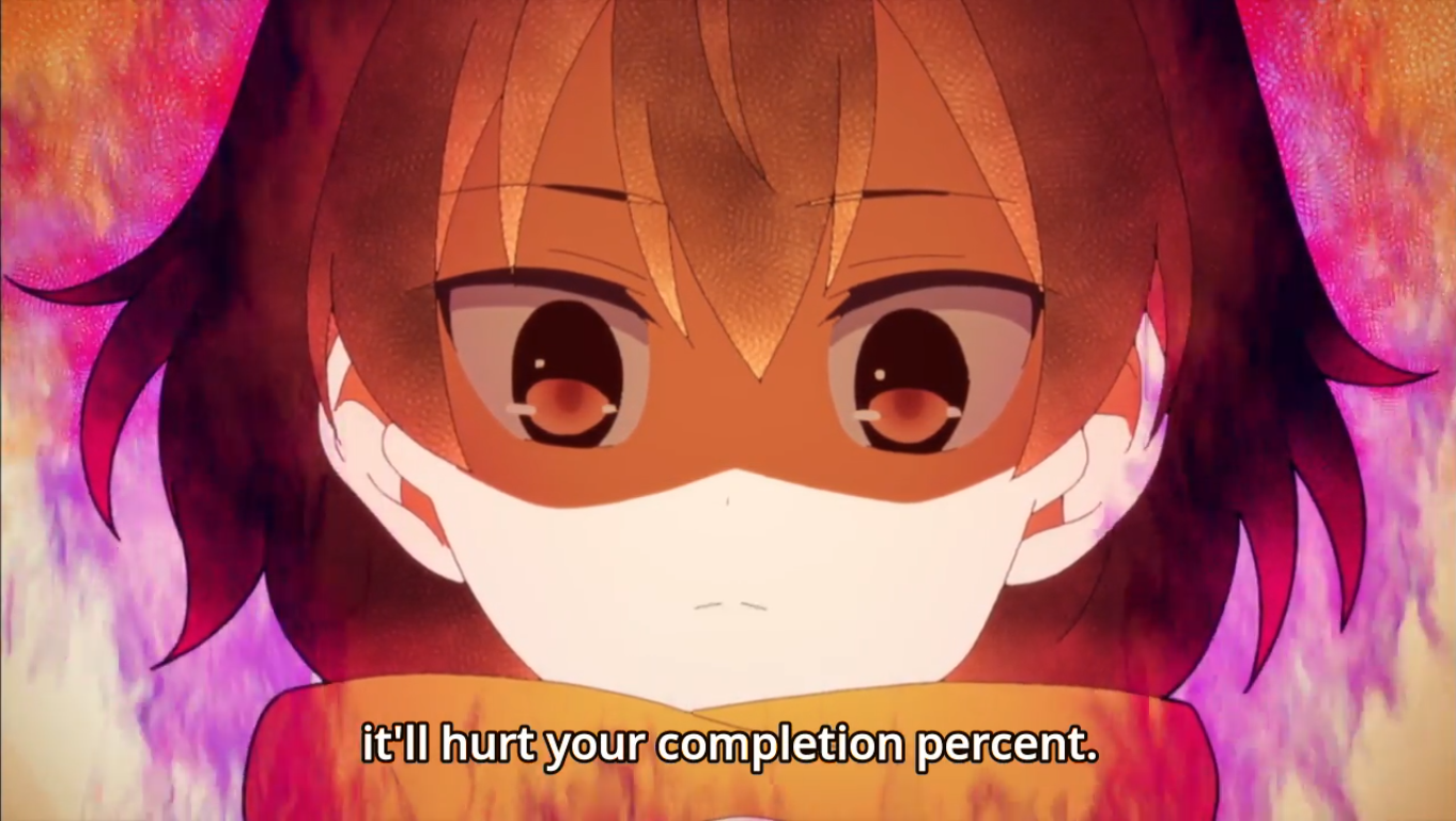 Paka makes 4 players partake in a nurturing game. They must take care of a giant egg, and after it hatches, nurture and tend to the girl who comes out. The 4 players are Akatsuki (main character), Makino (quiet, sleepy guy), Aya (grumpy guy), and Himiko (cute girl, short hair). Their individual wishes for what they want to see in the girl combine in a strange way. A kind-hearted panda girl with an afro and a sailor uniform is born. The episode is spent taking care of her until she’s content and disappears. The view count for the stream rises to around 3 million.