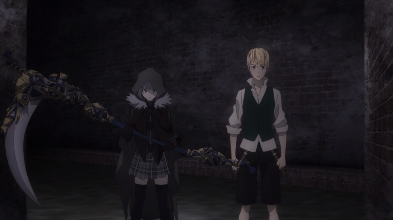 If you watched the prequel OVA to this series, sometimes called Episode 0, you should already be familiar with Flat and Svin, two of Waver’s top students. This episode incorporates them. Waver didn’t return after going into the sewers, so Gray called the boys to come with her and find the missing Lord. They discover him weakened and wounded from a fight with a giant rodent creature that eats electricity to grow bigger. It’s huge by now. Svin takes Waver home, while Gray and Flat take on the giant rodent.