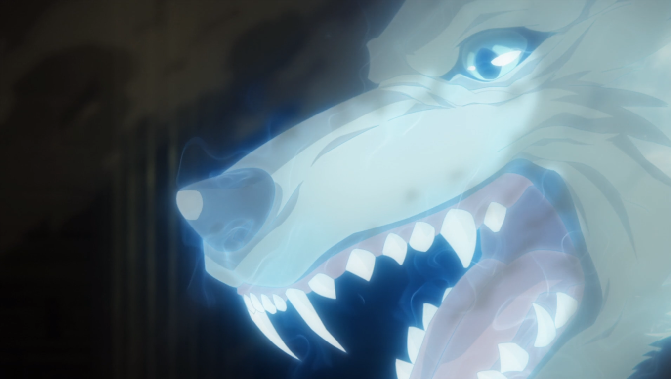 The design for the rodent is awesome but also kind of funny. It resembles a giant long-haired rabbit with a carnivore’s face shape and teeth– but still a pair of prominent rodent-like incisors. The rabbit features make it look more like it’s from the order lagomorpha (rabbits and pikas) instead of order rodentia (rats and mice). Of course, this a magical beast (a phantasm), so there’s no use trying to make sense of the classification. It’s just something I do for fun sometimes when an anime presents a new creature.