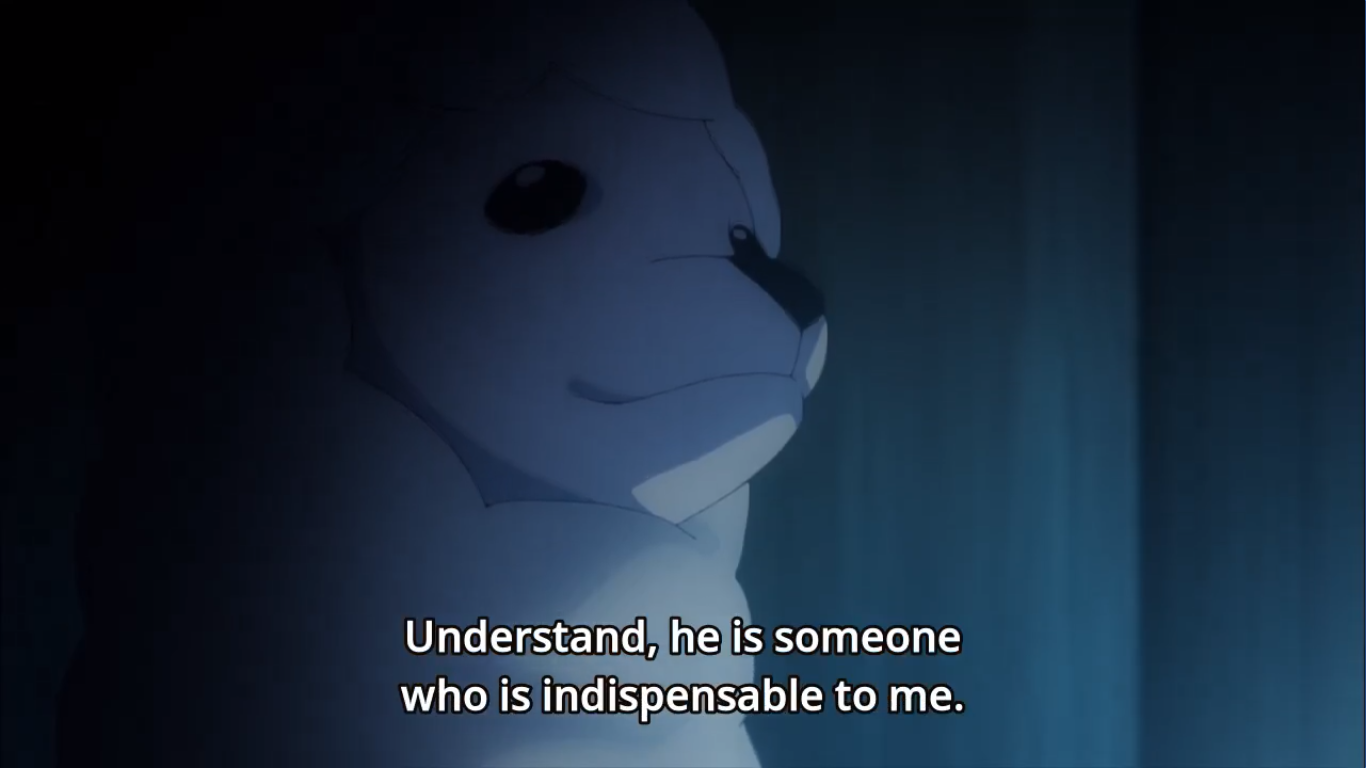 The critical part of this episode was undoubtedly in the middle, right after Akatsuki is knocked unconscious by the oni grandpa. Paka stops the old demon from killing Akatsuki. During the talk, our dear llama friend drops some interesting lines, which evoke fascinating implications and speculations. He says he’s the master of the game, and the old oni is only a character in that game. If needed, Paka warns that he’ll start a “reset,” which would for some reason cause the old oni to be separated from his grandaughter. (Maybe a reset would mean the characters lose all memories, and must start life again as different characters who aren’t even related. Or “reset” could mean the death of every game character so far created.)