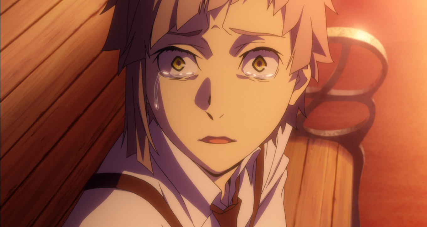Dazai is a fascinating character. He started working for the Port Mafia at and became the group’s youngest ever senior executive. Even at fifteen, he was fascinated with death, dealing with suicidal ideation and fantasies of painless suicide. He got a thrill at first from killing others, as we saw in ep 2. After joining the Port Mafia, Dazai become more interested in living, as evidenced in ep 3 (7 years before the present). Of course, after the death of Oda (4 years before the present), he quit the Port Mafia and joined the detective Agency. From then on, Dazai didn’t kill people. But I wish we knew his whole story and all of what he was thinking at each stage.