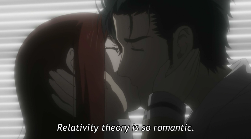 As Einstein pointed out, the perception of time is relative. Sometimes it feels like time is passing very slowly, while other times it flies by at breakneck speed. Makise Kurisu mentions Einstein’s theory of relativity in her thoughts, when she is kissing Okabe in episode 22. For her in that moment, it felt like time was passing so slowly, because she was savoring the moment.