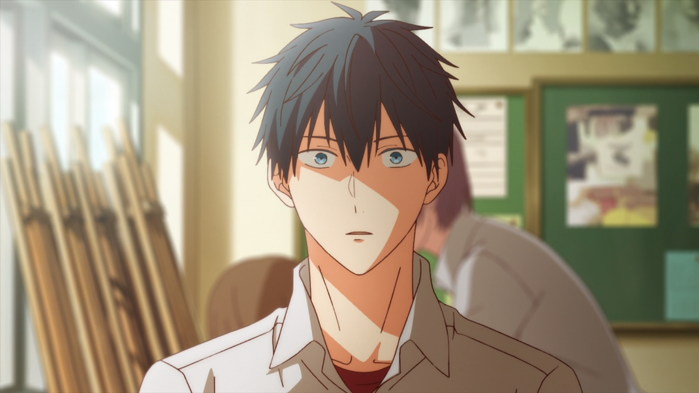 Putting the ending and speculation aside for now, let’s go back to Haruki and Akihiko. We were given the story of the formation of the band from Haruki’s point of view… starting from how he met the ruggedly handsome Akihiko Kaji. Watching his story of unrequited love unfold was bittersweet. Haruki got crazy-excited about simply looking closely at Akihiko’s face when they met in class. He never told Akihiko he was in love with him, even as time passed and the two formed a band together with the guitar prodigy Uenoyama.