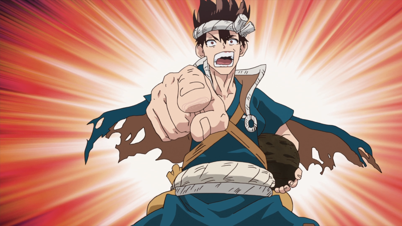 (Images from: Dr. Stone. Dir. S Iino. TMS Entertainment. 2019.)