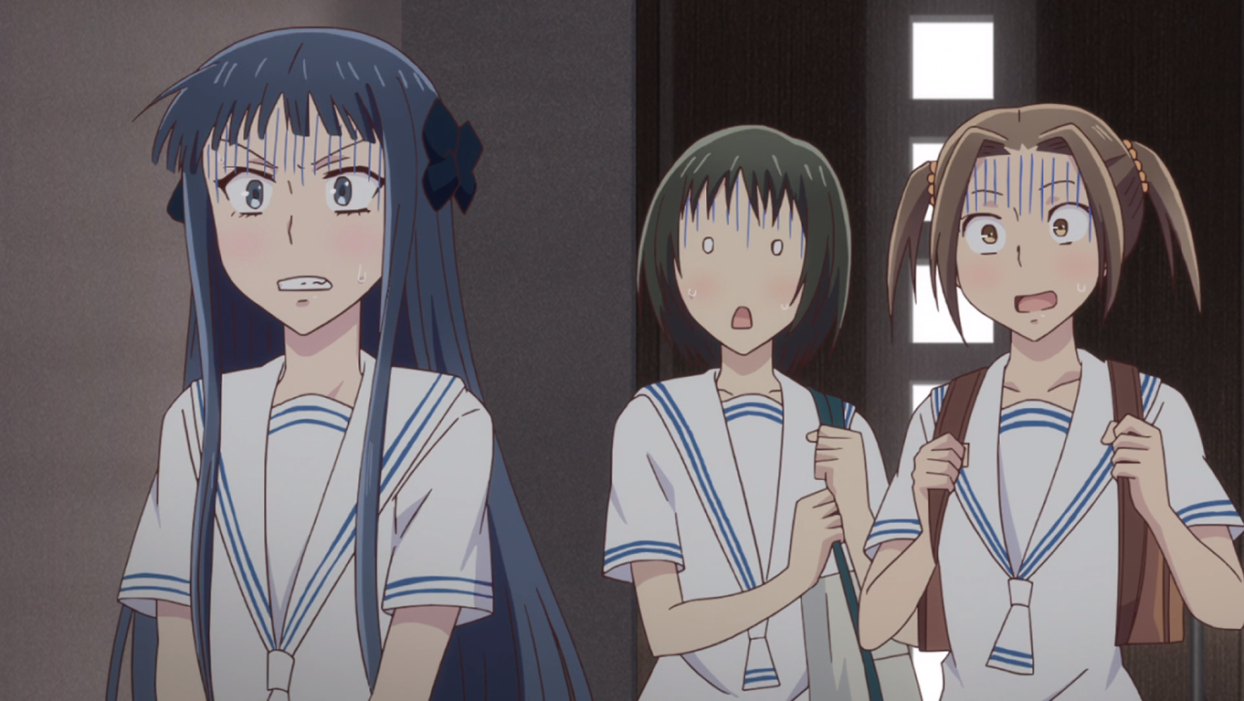I had two minor complaints about this episode. First, Motoko, Minami, and Mion are really too dumb and childish to be believable as characters. They serve well enough for comedy and for silly examples of what not to be. I expected them to more realistic or sympathetic. Second, a lot of the comedy of this episode was lost on me. That’s because a) it’s hard to smile with this headache, and b) I don’t understand fearing the occult or even entertaining the idea that curses, witches, and devils could be real. Sure, I understood that fear when I was 7 years old. But not by highschool age like these girls.