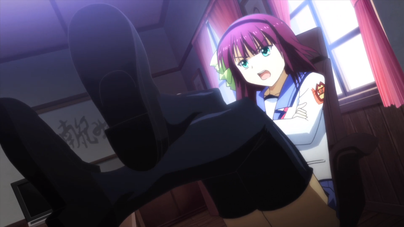 In ep 3, Yuri is critical of the idea of a GDM singing a ballad instead of a louder song to distract Angel in episode 3. She likes to make a show of outlining her new plans in front of everyone, as we can see in episode 3, among other cases. Occasionally, Yuri uses the “evil anime villain laugh” trope both for humor and because it comes naturally to her. Something else important about Yuri is revealed throughout episodes 1-3. She knows the ins and outs of this afterlife world very well. She figured out how to make weapons according to the rules of that world, organized the Guild, and helped build its two fortresses. We never see Yuri “die” in Angel Beats, but she knew how it worked, either from observing others or dying at least once herself. Yuri put together the battlefront leads everyone in it, even with their silly quirks and frequent stupidity.