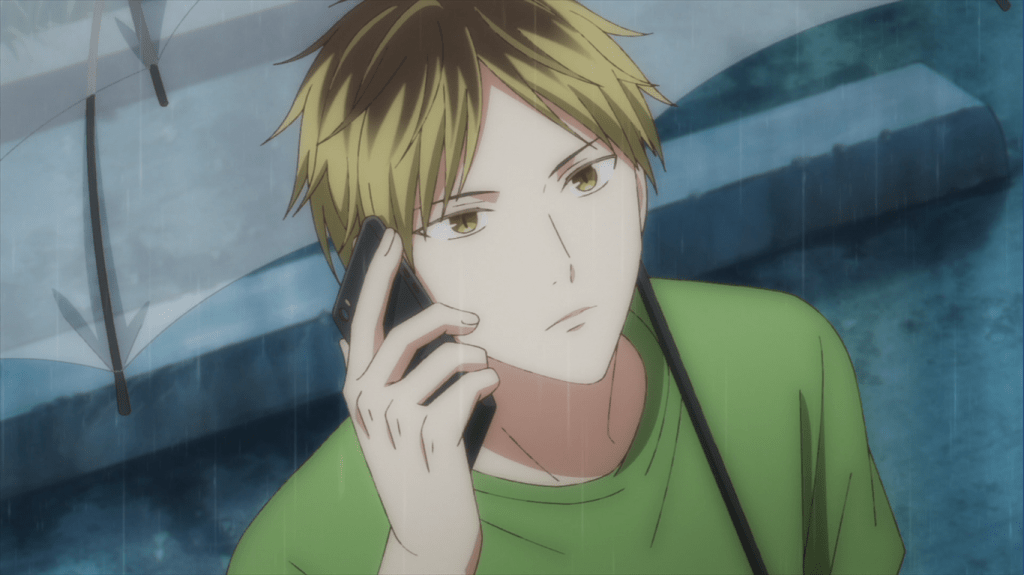 As the episode went on, I couldn’t help but think of things for me personally. Ue is confused and frustrated about his love. Mafuyu is reluctant to let himself truly process things with his deceased lover. I think it’s partly because Mafuyu is confused, too, and partly because he wants to run away from the issue. I’m kind of both. I’m frustrated and confused like Ue and hung up on the past like Mafuyu. My feelings about the person in my past are so confusing and frustrating, so of course, like Mafuyu, I’d rather not try to process it.