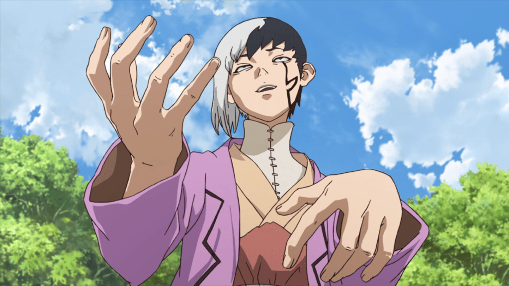 (Images from: Dr. Stone. Dir. S Iino. TMS Entertainment. 2019.)