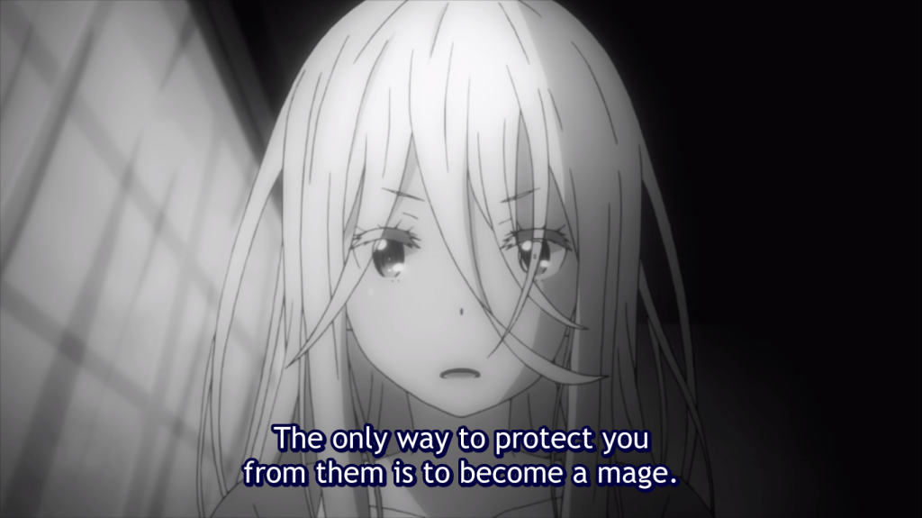 There was forshadowing for this. I’ve been wondering why at least one shot of every scene in Shingetsu’s room focuses on that creepy doll. There’s also the analogy of the Armanox being dolls to control; that’s been said since episode 1. Plus, the scene in episode 6 when Shingetsu says something like, “Rather than us mages controlling magic, it could be that Magiaconatus is controlling us.” Really, I should have gathered all that to piece together the last clue. But I’m glad I didn’t. If everything I thought would happen actually happened, I’d get bored.