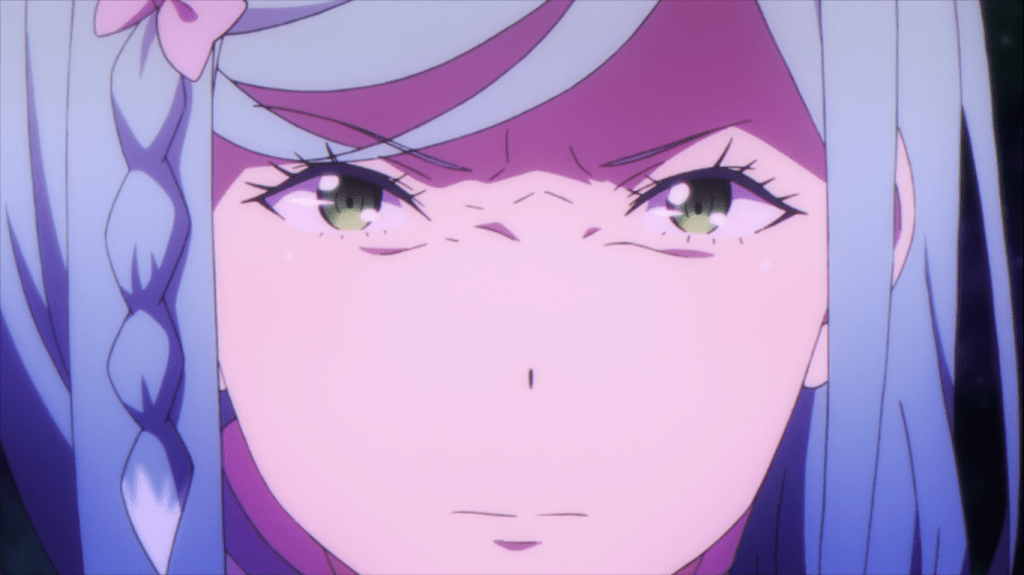 Certainly, I’m not only one who predicted that Mangetsu wasn’t human. I hypothesized in my episode 8 review that she was the will of Magiaconatus incarnate. Well, episode 9 definitely showed she’s not human. I thought everything was going exactly as predicted, which honestly would be a little boring, but there was a twist I didn’t see till the end of the episode revealed it. I thought maybe Magiaconatus created an invincible human body for Mangetsu. But actually, Mangetsu’s body is that of a “doll” that can be controlled by Magiaconatus.