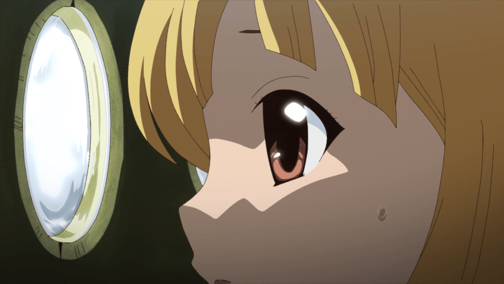 All that to say, I loved how Senku made “glasses” for Suika and had her try them on in a field of sunflowers surrounded by forested mountains. The scene was moving.