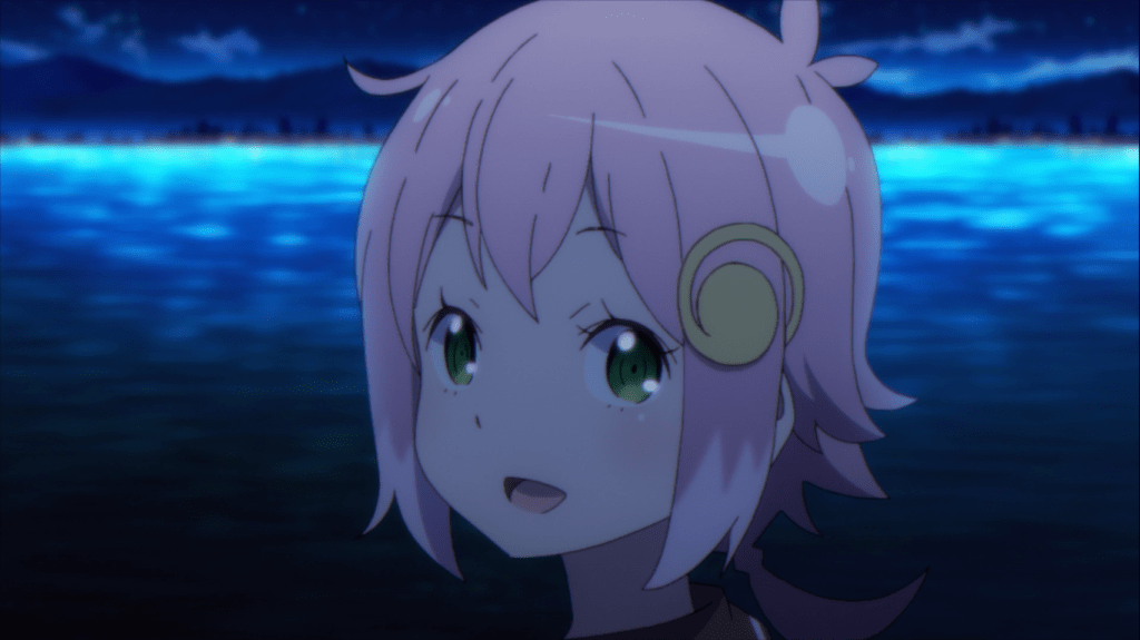 Here’s some examples of what I’ve just said. The reunion of Shingetsu and Mangetsu was too brief and awkward, when it could have been truly moving — and I’m not just saying that because I also sort of hoped for a kiss between them. There were scenes of scenery and nature and whatnot as the girls were all camping, but they just don’t compare in beauty to say, the flowers in episode 2 or lake and pine trees in episode 6.