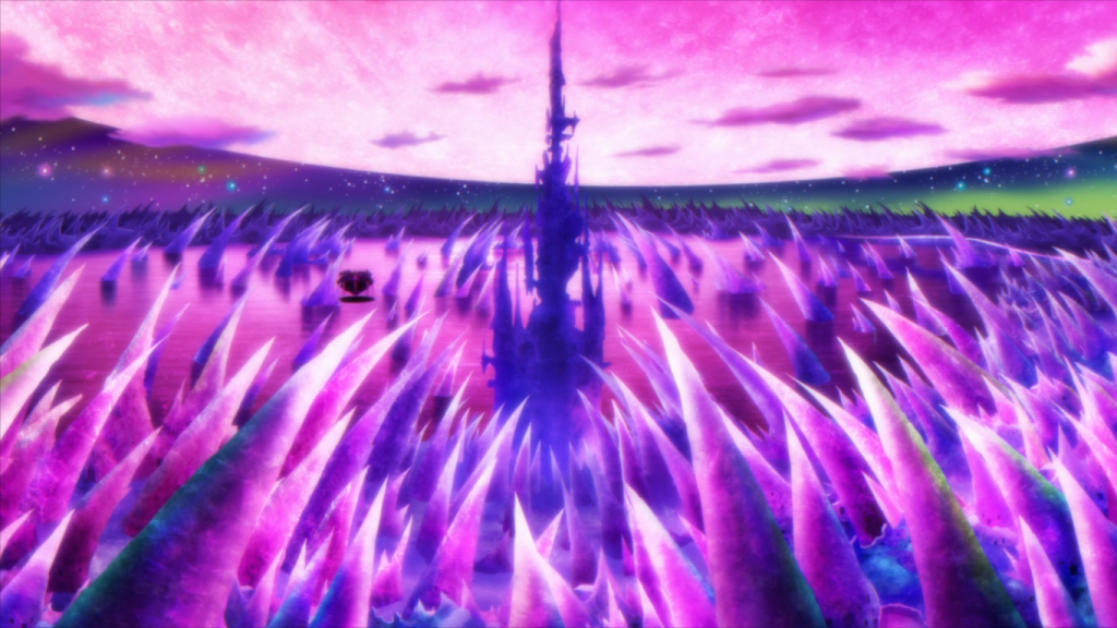 On the other hand, other things were done well in this episode. When Mangetsu said her goodbye to everyone but Shingetsu, it was a powerful and almost shocking scene. Also, when the new Magiaconatus battlefield appears, it looks stunning. I love those pinks and purples, and the way everything looks like it’s made of rock and crystal.