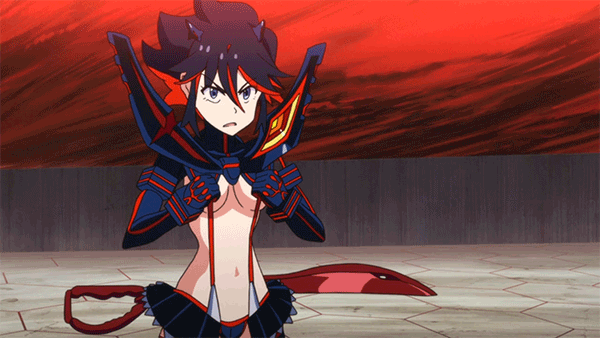 An assertive person, Ryuko has no problems sticking up for herself or saying what needs to be said. Despite everything she faces and all the physical amd emotional pain she suffers, Ryuko is seldom lacking in courage. The only things that make her balk or back out are threats and dangers to her loved ones, like Senketsu and Mako. Ryuko is also fiercely independent and doesn’t always work well with others. Still, her self-reliance and confidence are positive traits.