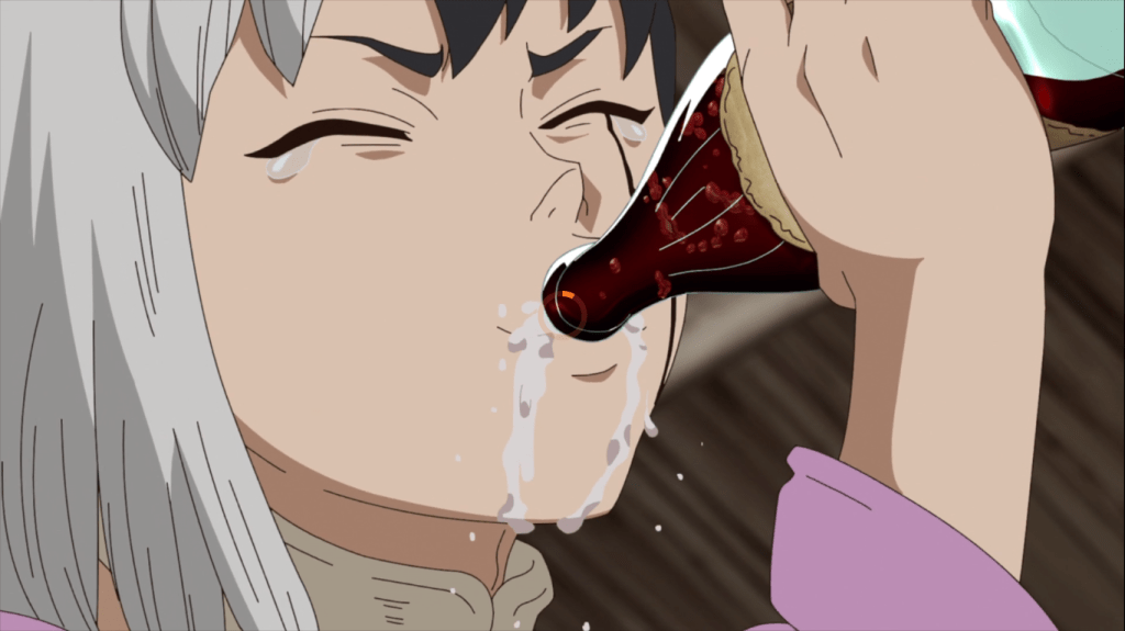 The former village chief reaffirms Senku in his new position of leadership. Apparently in all the six months here, Senku had never heard the name of the place, which is Ishigami Village. Senku is shocked to hear this, and just then, Ruri approaches him saying she knows that his full name is Senku Ishigami. What does this all mean? We’ll see. In other news, Gen got his cola.