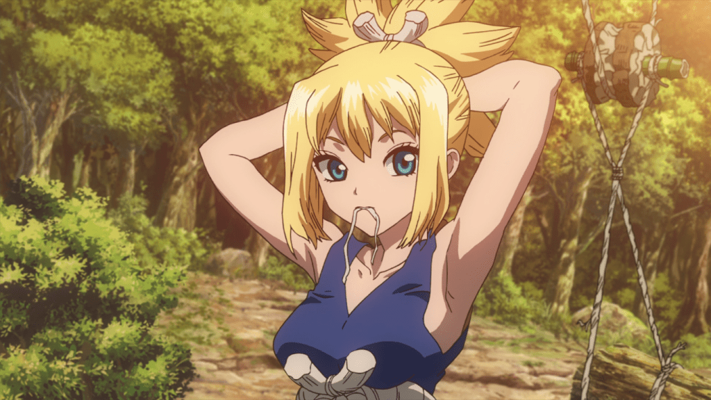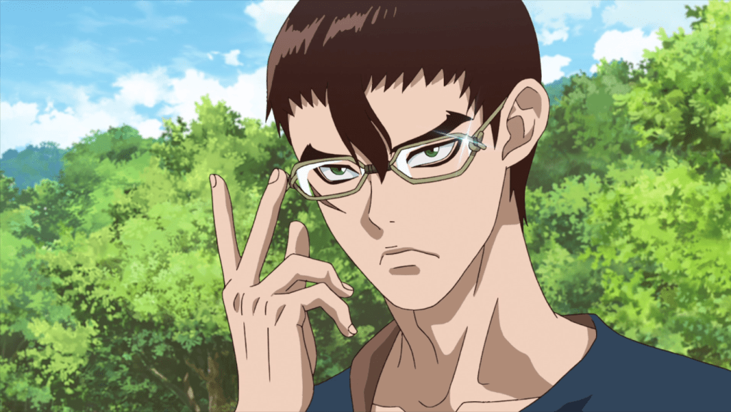Tsukasa is the main antagonist for the first two seasons of Dr. Stone. Despite being in highschool, he was already considered one of the most talented professional fighters alive and was known as “The strongest primate.” All of this was to make prize money to keep his little sister alive on life support. After waking up in the stone world, Tsukasa tried to make his own Kingdom of Might, ruled by strong young warriors hand-picked by him. They sought to ensure the corrupt older generations of our world were never revived.