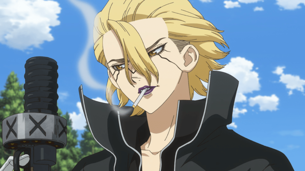 Yo is a simple-minded, impulsive young man who was fired from the police force after shooting a fleeing suspect. He didn’t seem to feel any regret. His behavior as the prison boss in Stone Wars leads many to think Yo is a psychopath. However, he accepted Tsukasa’s loss and ended up helping Senku in Dr. Stone: New World and onward. So, he seems to have some level of self-control and basic sense.