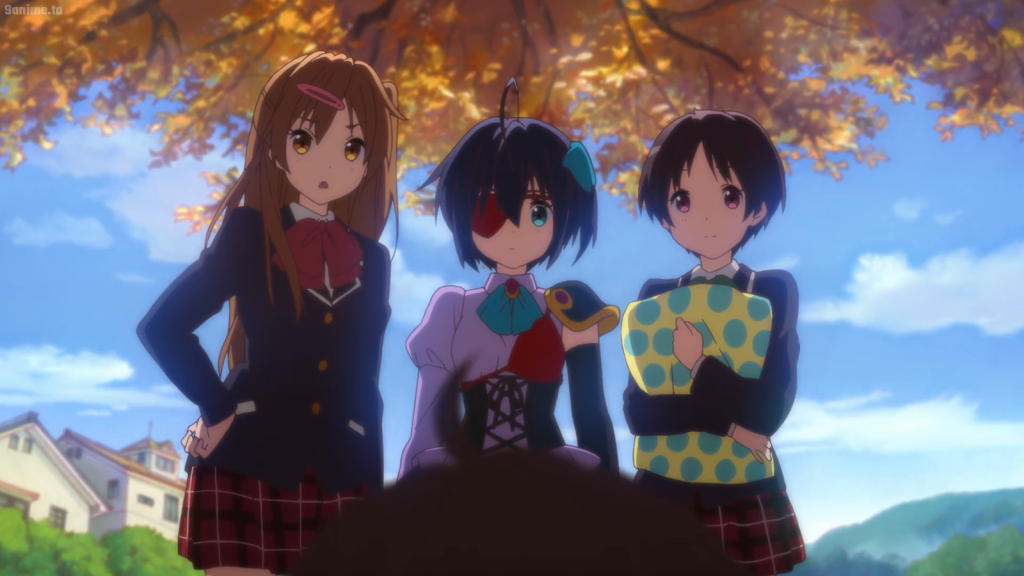 All the characters are lovable, in my opinion. Sometimes, they feel a little bit tropey, but that’s bound to happen on some level. Kumin was a cute and funny character. Isshiki was quite annoying, but comical, and slightly endearing at times. Touka, the older sister of Rikka, is similar to an antagonist character, but she is by no means a bad person. Even without paying much attention, you can see that all her actions are reasonable from the perspective of wanting the best for Rikka. Sometimes, that means tough love. The character category in Chunibyo impressed me immensely.