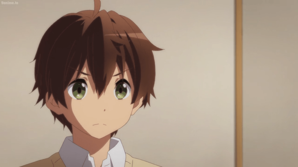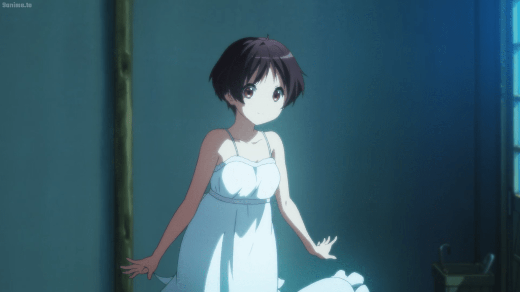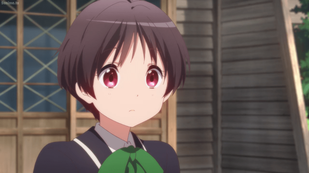 As for character designs, they vary from average to amazing. Even the somewhat overused design of Yuuta (main male character) looks endearing and detailed due to the quality and style of Kyoto Animation. The unique color palette I mentioned help make more distinct character appearances; for instance, the purplish color of Kumin’s hair made her cute haircut stand out much more than it would have with a more typical color. The best and most unique character design is that of Rikka (main female character). All of them are cute, though.