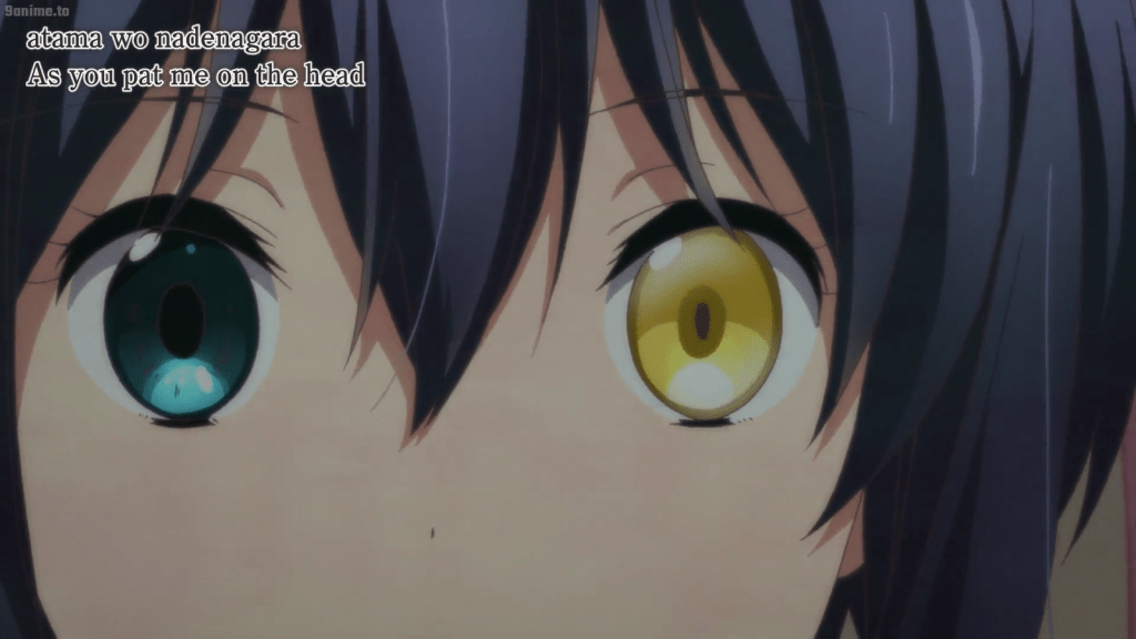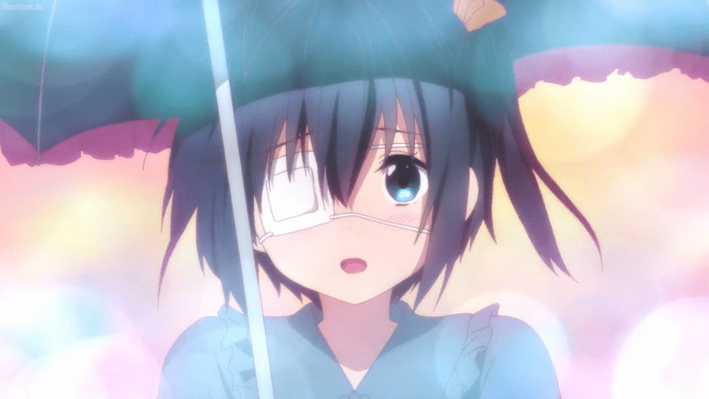 Rikka’s voice is adorable and hard not to love. Maaya Uchida is the seiyuu behind this character. She is known for various roles including Irina Shindou in Highschool DxD and Hiyori Iki in Noragami. She can also sing well. The ending theme, “Inside Identity,” was performed by Maaya Uchida, Chinatsu Akasaki, Azumi Asakura, and Sumire Uesaka — voices of Rikka, Nibutani, Kumin, and Dekomori, respectively. It’s not my style of song at all, but it gets stuck in my head, and I’ve come to enjoy it more over time.
