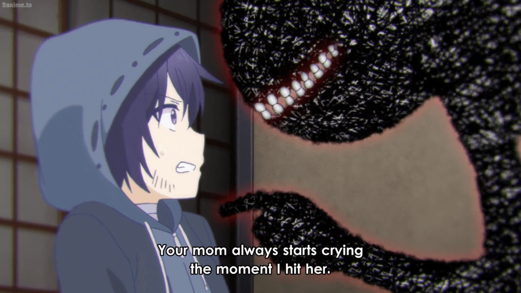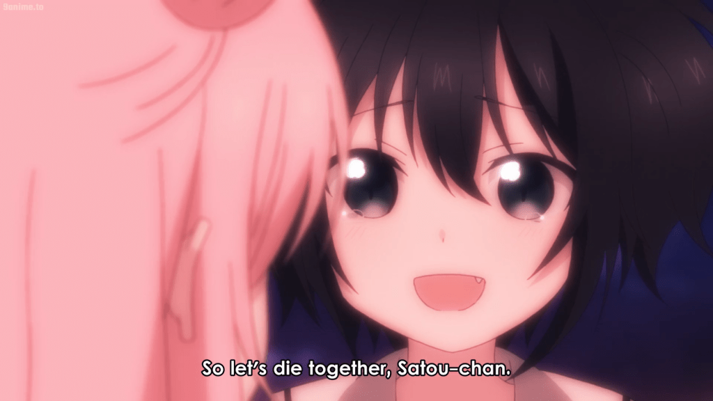 In complete contrast to Aunt, we have Shoko, a mentally typical character with very understandable issues such as difficulty committing. Seeing her overcome her hesitation is beautiful. She grows so much in a short time span, and she’s the best friend anyone could ask for. Asahi’s determination and strength to survive abuse and reunite his family is stunning. But the most intriguing character– and perhaps the most demented– is Satou. The show’s exploration of her mind is what boosts the character category from 7/10 to 8/10. For now that’s all I’ll say about the characters, but there’s so much there to unravel that I may write more detailed posts about them in the future.