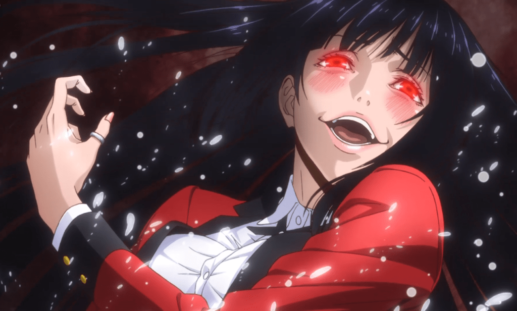 Ask anyone; they will say that Yumeko Jabami is an unusual and eccentric protagonist for an anime. She is a transfer student in a private academy where most students are loaded and spend their time gambling. Without knowing anything, Yumeko charges into the fray and shows that she’s crazy about gambling. (Kakegurui means “gambling madness.”) This young woman is great with games and even greater with mind-games, so she wins a lot. But even when she loses, Yumeko takes it in stride, and immediately begins gambling again. She gets excited about the risk and the reward, often going on crazy, dramatic rants about it. She even looks like gambling turns her on sexually to some degree.