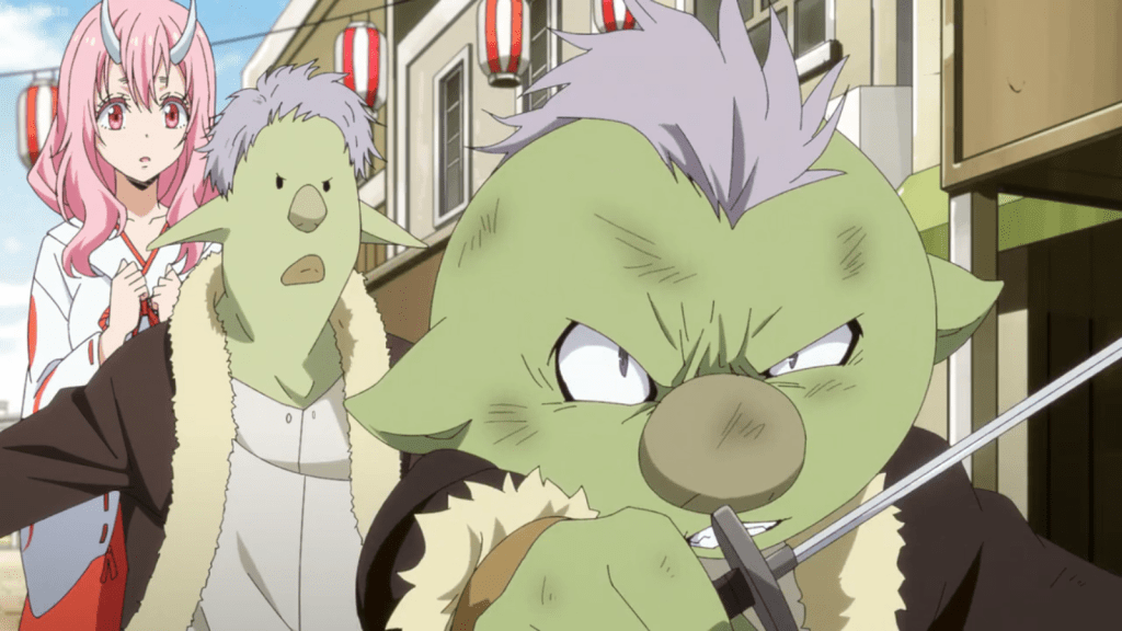 Things are not going well for Rimuru or the nation of Tempest. The otherworlders continue fighting with the goblin boys and Shion. Then the Holy Knights arrived and started ravaging the city, cutting citizens down and starting fires. Meanwhile, Rimuru was trapped inside an anti-monster barrier and is fighting Hinata, the chief of the Holy Knights and Imperial Brigade. Rimuru is losing badly. The conclusion of his fight with Hinata was unclear, so we’ll have to see what happens next week. I’m a little surprised at the dark events.