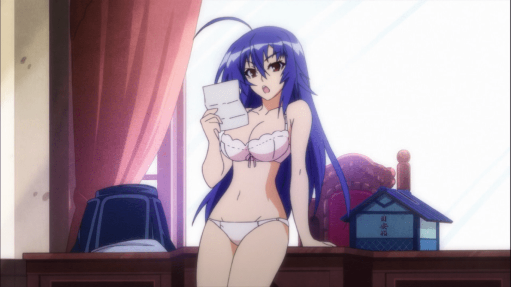 Whether fanservice is a pro or con depends on your opinion as well as the particular examples of fanservice. For me, I might have different opinions on each series. I dislike many ecchi shows because of being shallow or having ethically problematic elements. But I love a few ecchi shows like Kill la Kill or Darling in The Franxx. When it comes to Medaka, I don’t have any real issue with the fanservice, which is mostly of Medaka herself by the way. It’s pretty mild for ecchi, focusing on boob shots, cleavage, skirt shots, and swimsuits. This one is up to you. Pro or con?