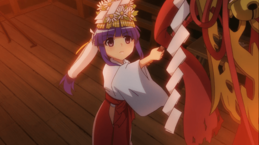 I don’t like that we don’t know who the goddess/witch is who talks to Satoko. She keeps saying it doesn’t matter, and I’m sure it doesn’t really matter to the characters in Higurashi. But I’m interested in the entire franchise and I’ve read most of Umineko, so I want to know what this mysterious being is in terms of the universe’s lore. An entire origin story wuld be over the top, but a passing reference to her identity or any connection to other gods or witches would have been ideal.