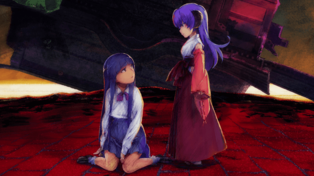The backgrounds and art for the settings were beautiful. But I actually kind of like the aesthetic of Hinamizawa better in the older Higurashi series, even though the differences were small. The character designs for everyone haven’t really changed except with a few details like altered shades of color or more mature-looking bodies. They all look fine. It was interesting to see the teenager versions of Satoko and Rika. The last thing I want to mention is the red glowing eye effect used for Rika and sometimes Satoko. It appears in them because they are immortals who live in repeating time loops. To be honest, I didn’t like this effect very much. It just seems unnecessary.