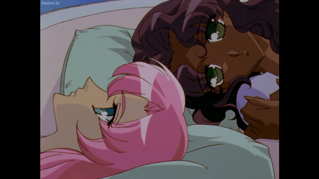 It’s hard to know what Anthy is thinking and feeling since she always acts like nothing is wrong, expressing only empty smiles. For Utena to live with Anthy, there will be several practical problems like trying to hide the fact that Akio rapes her frequently. There will also be the inevitable danger of Akio grooming and courting Utena. There may be unexpected feelings arising as well, such as jealousy of Utena or Akio. Anthy also does most of the cooking and cleaning. With this amount of considerations, a normal person would probably feel stressed. However, Anthy seems happy. And I don’t think it’s only her faked, empty “happiness.” The main evidence is how Anthy becomes slowly more expressive and honest around Utena than before. (Also, in the next arc, she says she wishes this time living together would last forever.) All in all, living togther is helping Anthy grow closer to Utena.