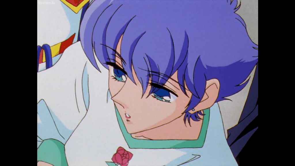 The abuse of Anthy is an important way in which Akio controls her and keeps her attached to him. There’s no question that Anthy feels emotionally obligated to Akio, which is why she rarely defies him. The Apocalypse Saga explains more about the past of Anthy and Akio/Dios, but for now, all we have to go on is a flashback of young Anthy crying and embracing Dios, telling him, “From now on we’ll live to help each other.” It’s clear that at some point, Anthy did truly love Akio/Dios, and thought of him as her prince. However, the one she serves is no longer Dios, but only his empty shell Akio, devoid of morals. Anthy knows this and yet can’t let go. It’s mostly because she’s being manipulated, but part of it is also Anthy’s own desperation for the old prince and the pity she feels for the empty shell left behind. That’s what I think anyway.