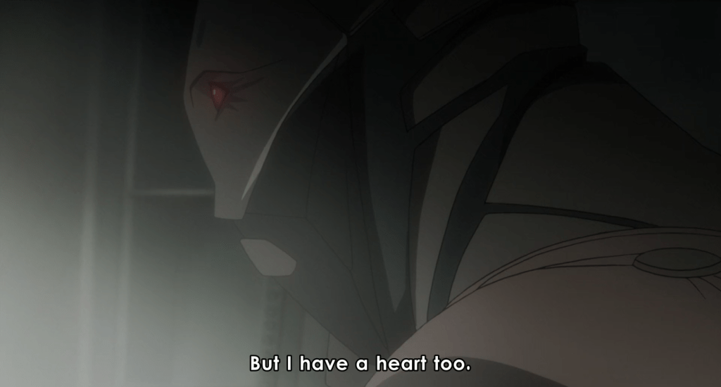 This episode hits hard because Iggy died before these issues could be resolved. However, in sacrificing himself to save Re-L, the conflicted Autoreiv at least proved to Re-L that he loved her. I don’t think there’s any doubt Iggy cared about Re-L, and that care came from his heart, not his previous programming. If it was his only his programming that made him love Re-L, he wouldn’t have kept taking care of her at all after being infected. That being said, it was not good of him to let himself be eaten alive by his bitterness and resentment. He treated Re-L badly in this episode. Even as he was dying, Iggy kept switching between rage at Re-L and gently asking her not to hate him. He never arrived at a peaceful resolution, and that’s what makes me the most sad about this episode.