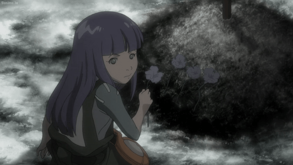 As I mentioned in the episode synopsis, there is an important little moment with Pino as she is putting flowers on the graves. She says she understands that death is a sad thing. (After all, Pino lost her friend Timothy in episode 5.) Re-L’s first thought is to blame Cogito and view it as a negative thing, but then she stops herself. She asks whether Pino is unhappy now that she understands grief. Pino replies that she’s probably happier now that she understands. When Re-L asks why, Pino says she doesn’t know why she feels that way. The childlike Autoreiv then leaves to put flowers on the other grave.