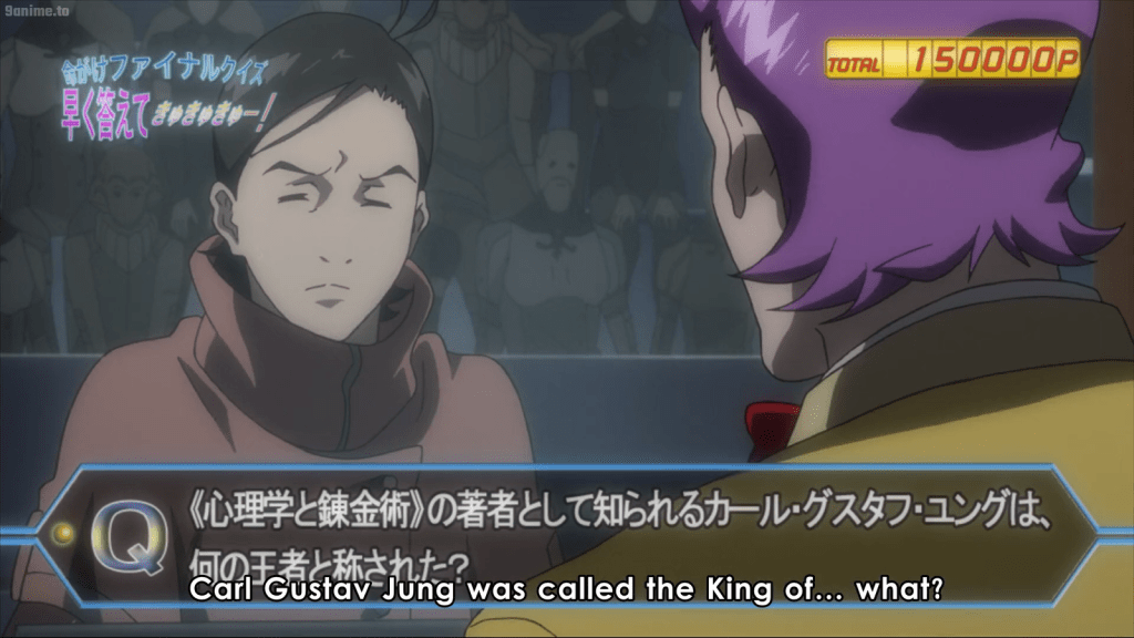 **Carl Jung was probably mentioned in this episode because Ergo Proxy focuses so much on the psychology of its characters, including their subconscious wishes, memories, and needs. You could say, for example, that Vincent’s true memories have been hidden away by his subconscious. You could also say that the identity of Ergo Proxy rests within Vincent’s subconscious, and vice versa when he is more in touch with his proxy self. Since Carl Jung did helped the field of psychology, as well as exploring the concepts of personality and the subconscious, it is fitting to include his name in a trivia show.