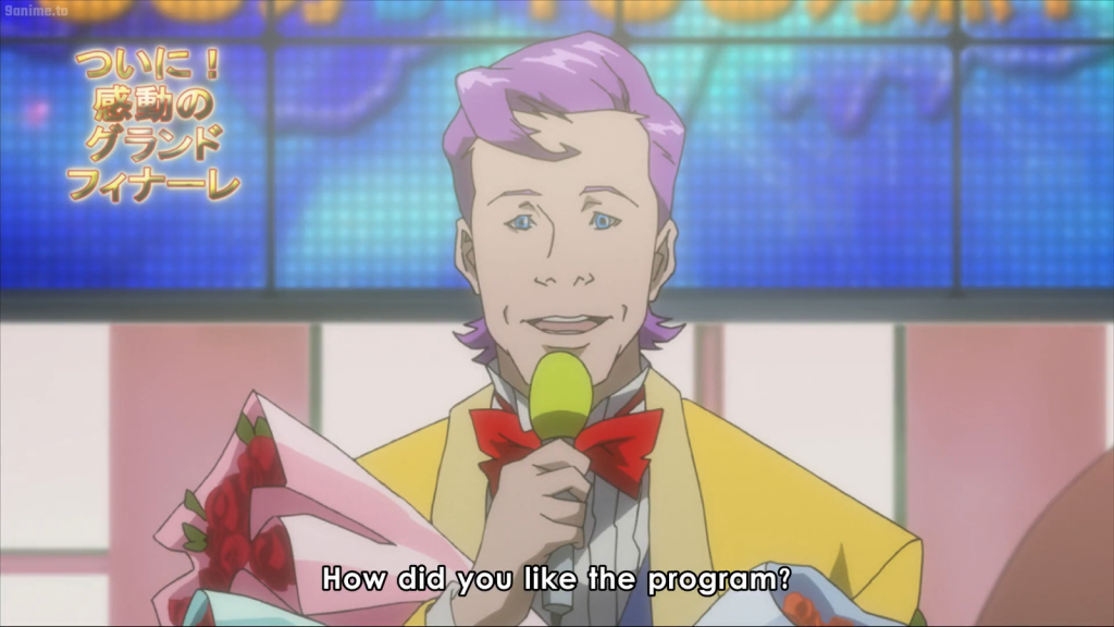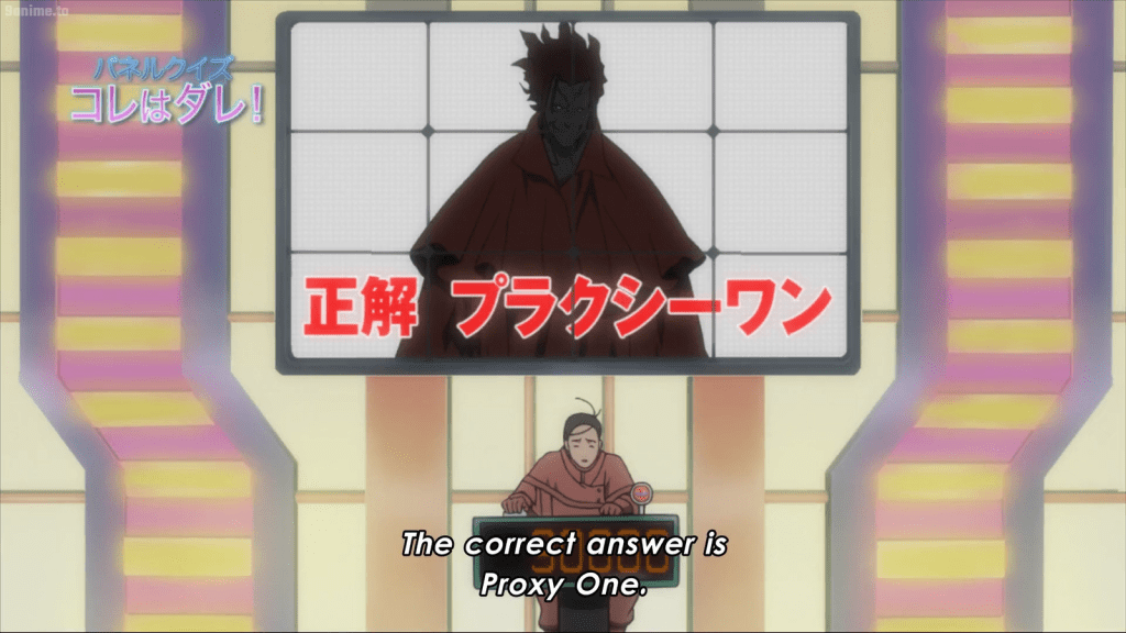 The gameshow is an interesting episode used to provide information about the world of Ergo Proxy, including what happened to humanity after an ecological crisis that wiped out 85% of life on Earth. They also talk about the Proxy Project, and perhaps most importantly, directly mention Proxy One for the first time. A few other bits of trivia information about the real world are also included, such as references to psychology, philosophy, and classic music.