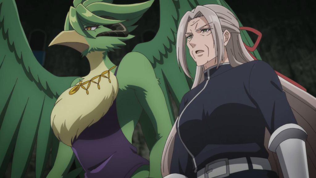 I quite enjoyed this installment of The Tale of Outcasts, mostly because I loved Iberta, the old lady commander. She was impressive as she fought to defend the headquarters of the Sword Cross Knights. Her history with the armored commander, Sol, was also interesting. Additionally, this episode gave us another chance to see the bird demon, Astaroth, whom I also like.