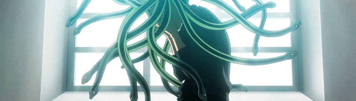 It would take far too long to recount all the character information in this episode. Instead, I’ll mention the main event: the truth about Zoe Ivy. He is a Gorgon-human hybrid who struggles to live with his Gorgon traits. Zoe is extremely sensitive to smells and sounds, and whenever he feels unstable, his hair becomes a nest of snakes. Additionally, if he makes direct eye contact with others, they will become temporarily immobilized. Furthermore, Zoe is anxious because Gorgons were traditionally hunted by sorcerers. The nervous Gorgon boy tries to manage all this by wearing earmuffs and goggles and avoiding eye contact.