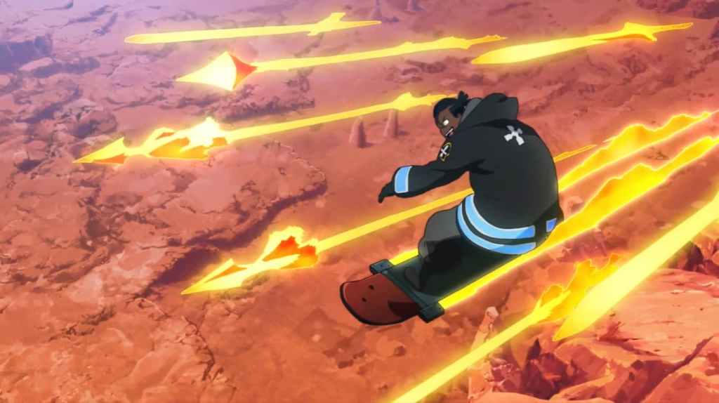 He specializes in close, hand-to-hand combat, and he has the power to create his own flames and use them in battle. The way he utilizes the flames to boost himself while riding a skateboard is a treat to watch!