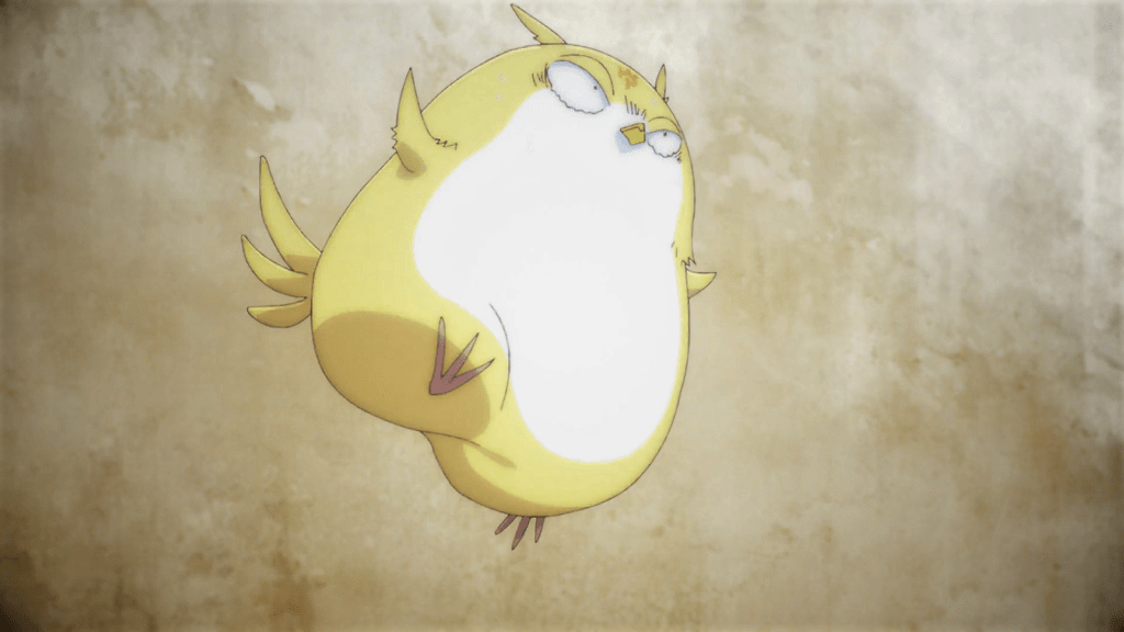 The summoning spell is extremely difficult, and at first, it seems like Sariphi is doomed to fail. But after a talk with the king, she gains more confidence and finally succeeds. A holy beast is indeed summoned, but it’s an extremely weakened and pathetic state. It’s apparently a phoenix, but it resembles a fat baby chick. The creature used to be regal and huge, but has grown weak. However, by the end of the episode, the phoenix is able to regain his power and take his rightful form once again. It’s all thanks to Sariphi, who believed in him when nobody else did.