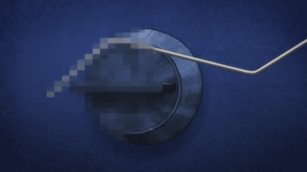 I almost forgot to add my reaction to the lock-picking scene. I’m not sure if it aired like this or not, but the version I watched online had censored the shape of the pick. This strikes me as incredibly stupid. I suspect there is some Japanese law or regulation that forbids visually showing how to commit a crime like breaking and entering. That’s the only explanation I could think of, and it’s still mind-bogglingly absurd. Stop censoring anime, Japan. Thanks.