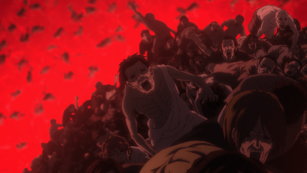 Another cool thing about the colors was that sometimes there were very bold shades in Thorfinn’s dreams. For example, the warrior’s afterlife he visits in episode 9 is bright red like a combination of blood and lava. I liked the imagery of the half-rotted dead bodies clinging to Thorfinn. The animation fluidity is not great except maybe in a few scenes. Just like with Attack on Titan, MAPPA does a much better job with detailed still frames than actual animation. Hopefully, this gives a decent mental picture of the visuals. I think they are excellent, though one step down from the previous season.