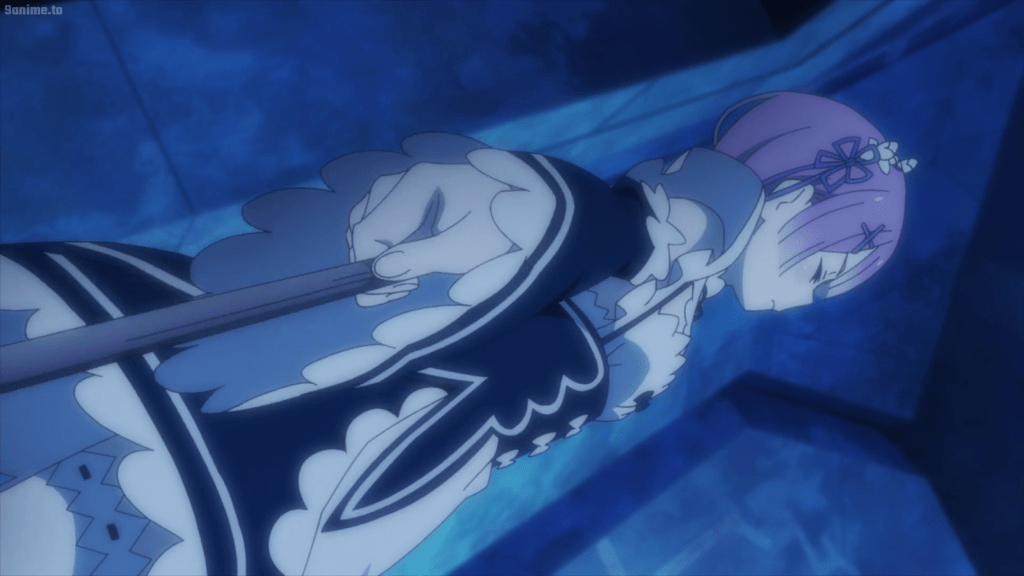 Compared to the season 2 part 1, the art and animation in season 2 part 2 is more impressive. It looked like more detail and time was put into some character shots, especially of Ram and Subaru. There was also the dramatic final fight with Elsa among the raging flames. That was very cool from a visual standpoint.