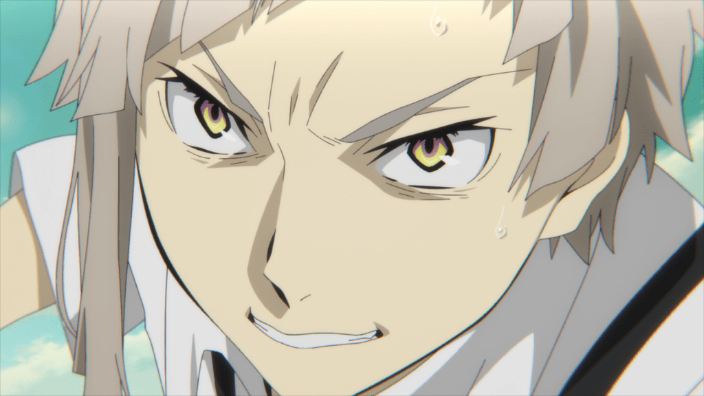 In this episode, Atsushi works together with Akutagawa to try to defeat Kamui, who is actually Fukuchi. The only reason Akutagawa is helping is because Dazai ordered him to do it as part of his “purpose in life.” (We also learn a bit later that Akutagawa is obsessed with his purpose because he is doomed to die young from a lung disease.)